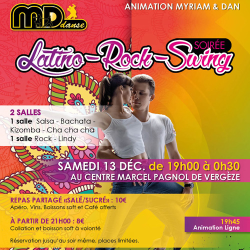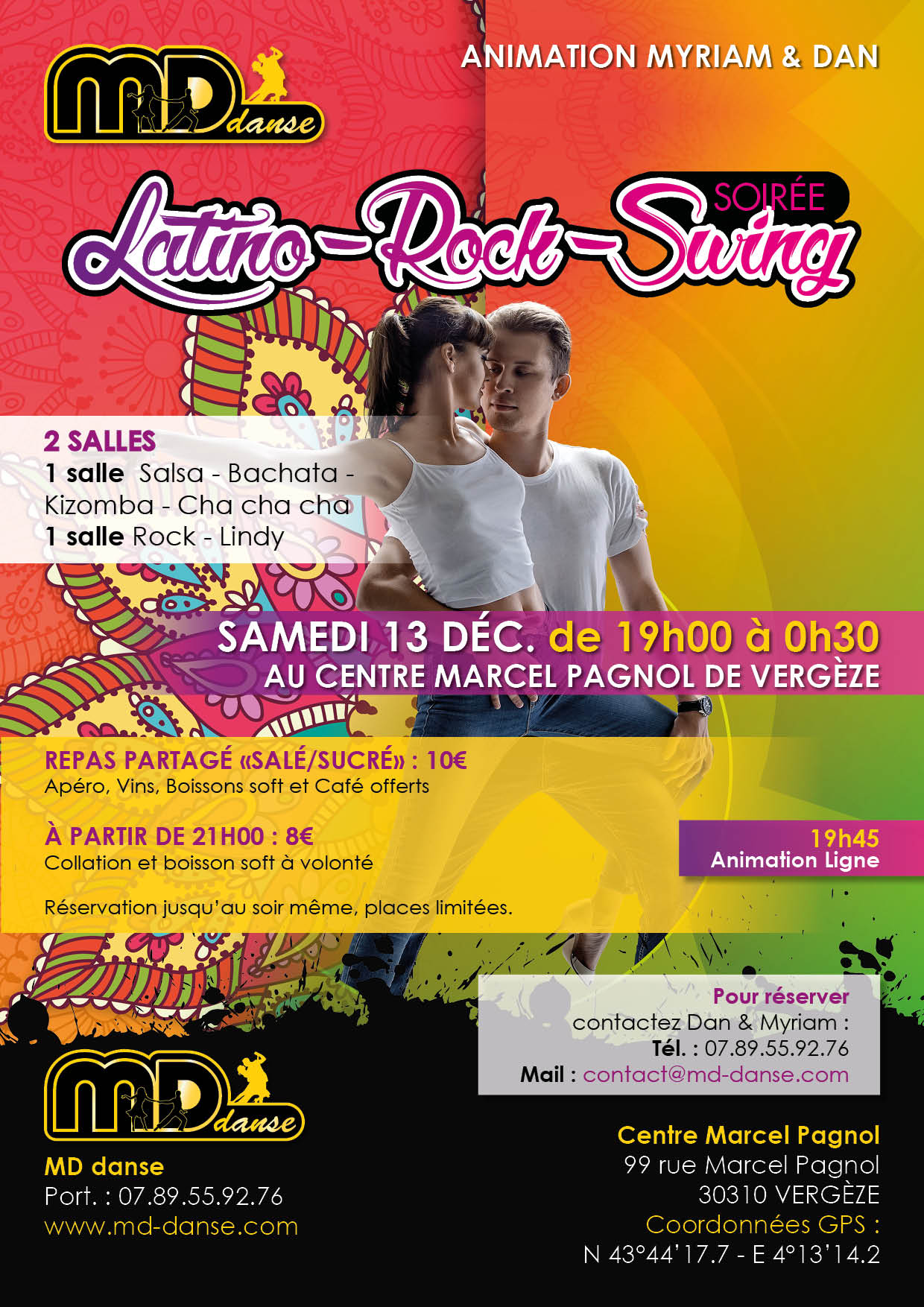Soirée LATINO-ROCK-SWING de 19h00 à 00h30 au Centre Socioculturel Marcel Pagnol de Vergèze :